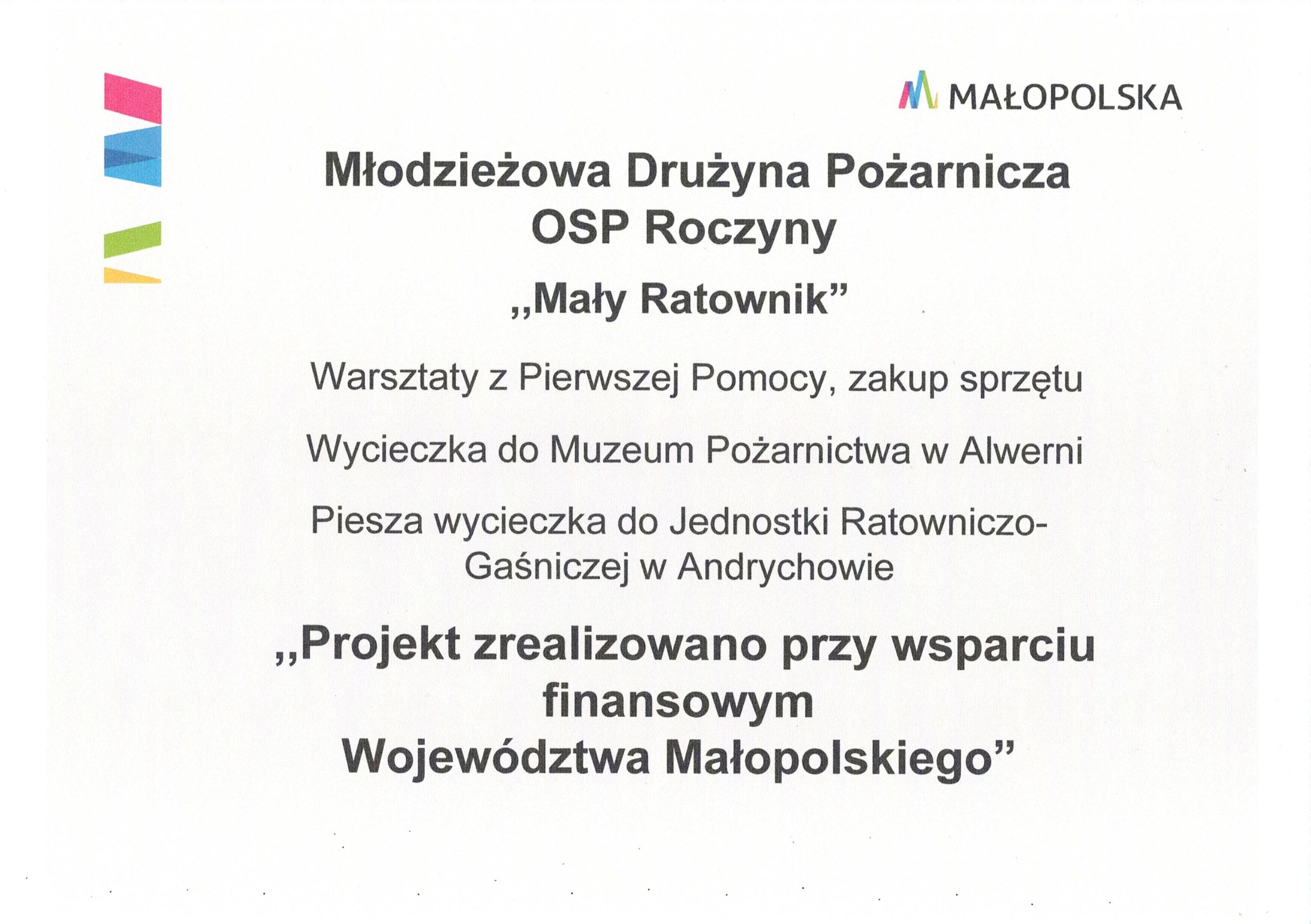Projekt „Mały ratownik” jest realizowany przy wsparciu Województwa Małopolskiego, dzięki niemu dzieci zdobyły nową wiedzę i umiejętności. Inicjatywa okazała się nie tylko wartościową lekcją bezpieczeństwa, ale również inspirującą przygodą.