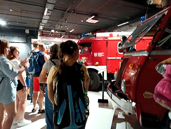 Podczas zwiedzania młodzież podziwiała zabytkowe wozy strażackie, ręczne sikawki, mundury, hełmy i narzędzia, które dawniej wykorzystywano podczas akcji gaśniczych. Ekspozycje ukazywały zarówno codzienność strażaków ochotników, jak i historię zawodowych formacji pożarniczych. Duże wrażenie zrobiły również prezentacje sprzętu z XX wieku, które pozwoliły porównać dawne rozwiązania z nowoczesnym wyposażeniem stosowanym obecnie.